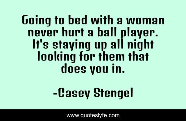 This page presents the quote "Going to bed with a woman never hurt a ball player. It's staying up all night looking for them that does you in.". Author of this quote is Casey Stengel. .