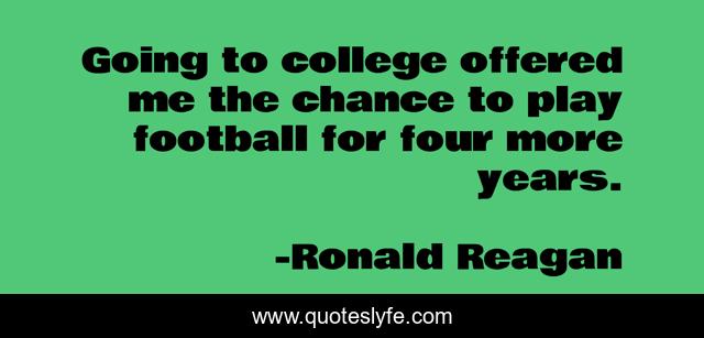 This page presents the quote "Going to college offered me the chance to play football for four more years.". Author of this quote is Ronald Reagan. This quote is about me, football, college,.