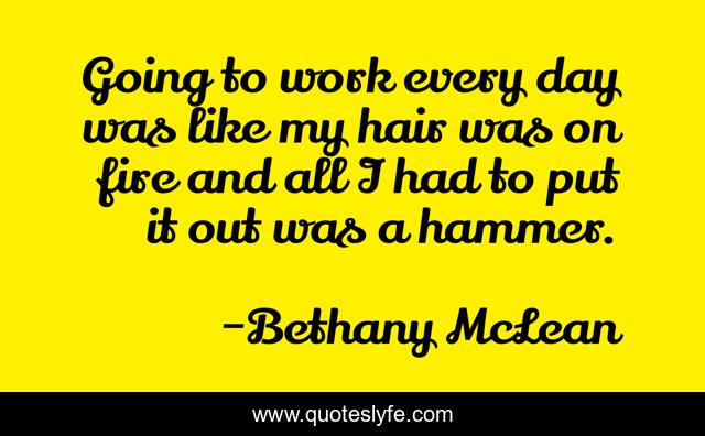 This page presents the quote "Going to work every day was like my hair was on fire and all I had to put it out was a hammer.". Author of this quote is Bethany McLean. This quote is about humor, business,.