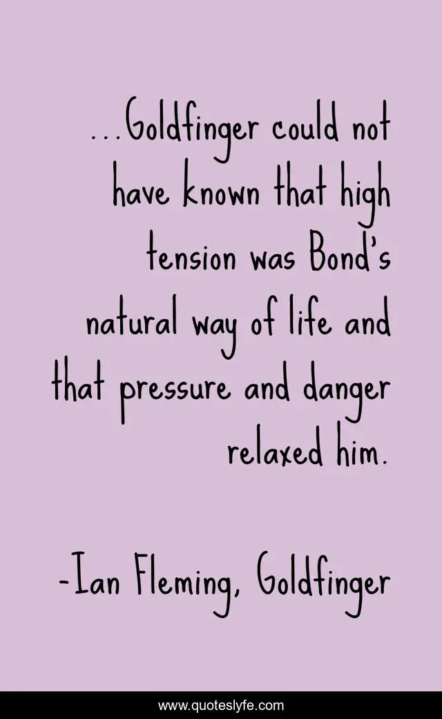 This page presents the quote "...Goldfinger could not have known that high tension was Bond's natural way of life and that pressure and danger relaxed him.". Author of this quote is Ian Fleming, Goldfinger. This quote is about bond, relaxation, 007, danger,.