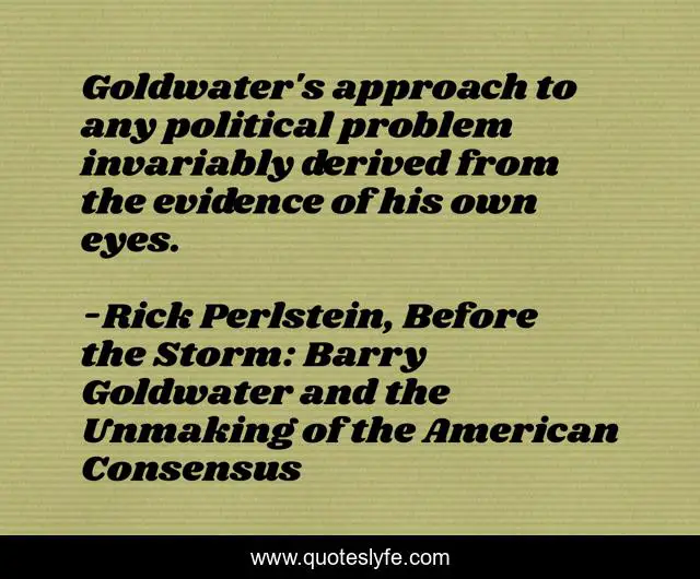 "Rick Perlstein, Before the Storm: Barry Goldwater and the Unmaking of the American Consensus Quotes." Quoteslyfe.com, 2025. Fri. 05 Dec. 2025. <https://www.quoteslyfe.com/quote/Goldwater-s-approach-to-any-political-problem-218267>.