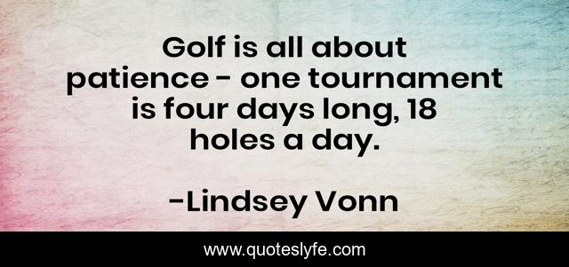 This page presents the quote "Golf is all about patience - one tournament is four days long, 18 holes a day.". Author of this quote is Lindsey Vonn. This quote is about golf, day, long,.
