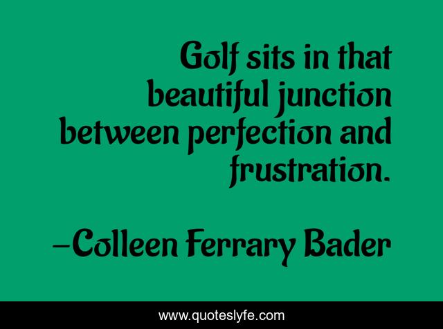 This page presents the quote "Golf sits in that beautiful junction between perfection and frustration.". Author of this quote is Colleen Ferrary Bader. This quote is about networkandgolf, golf, success, business, colleen-bader, network-golf, colleen-ferrary-bader,.