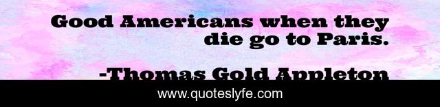 This page presents the quote "Good Americans when they die go to Paris.". Author of this quote is Thomas Gold Appleton. This quote is about america, americans,.