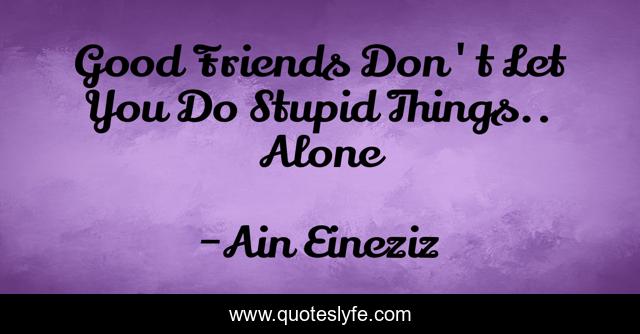 This page presents the quote "Good Friends Don't Let You Do Stupid Things.. Alone". Author of this quote is Ain Eineziz. .