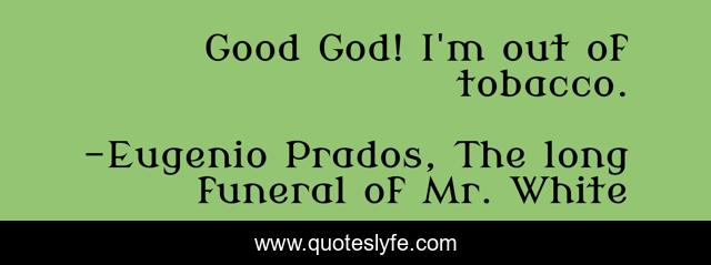 "Eugenio Prados, The long funeral of Mr. White Quotes." Quoteslyfe.com, 2025. Fri. 05 Dec. 2025. <https://www.quoteslyfe.com/quote/Good-God-I-m-out-of-tobacco-56303>.