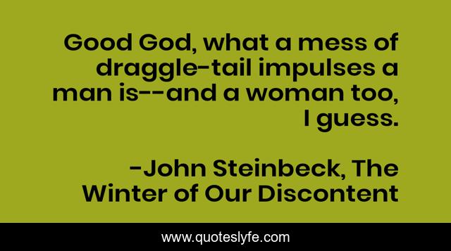 This page presents the quote "Good God, what a mess of draggle-tail impulses a man is--and a woman too, I guess.". Author of this quote is John Steinbeck, The Winter of Our Discontent. .