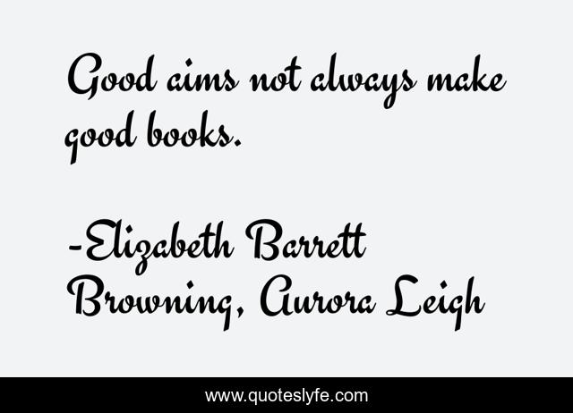 "Elizabeth Barrett Browning, Aurora Leigh Quotes." Quoteslyfe.com, 2025. Fri. 05 Dec. 2025. <https://www.quoteslyfe.com/quote/Good-aims-not-always-make-good-books-66987>.