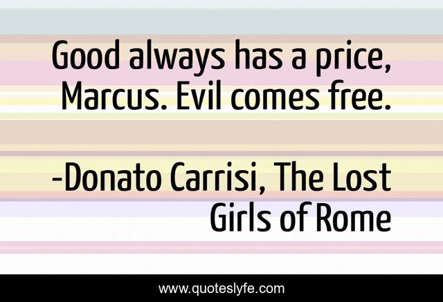 "Donato Carrisi, The Lost Girls of Rome Quotes." Quoteslyfe.com, 2025. Sat. 06 Dec. 2025. <https://www.quoteslyfe.com/quote/Good-always-has-a-price-Marcus-Evil-154160>.