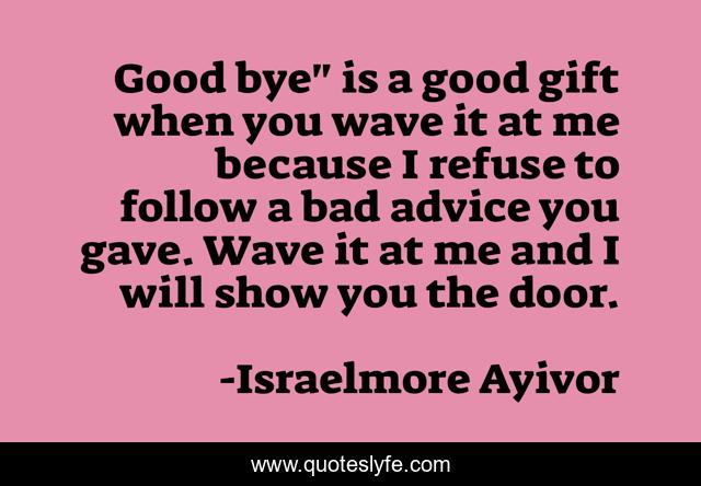 "Israelmore Ayivor Quotes." Quoteslyfe.com, 2025. Mon. 08 Dec. 2025. <https://www.quoteslyfe.com/quote/Good-bye-is-a-good-gift-when-129965>.