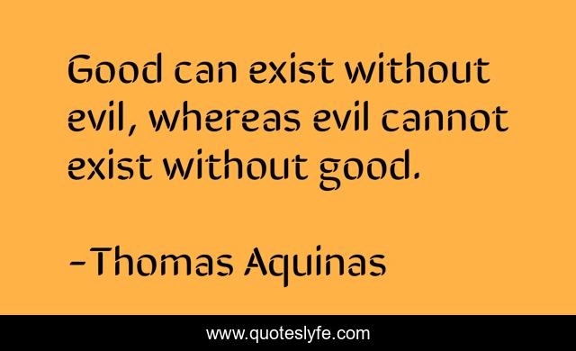 This page presents the quote "Good can exist without evil, whereas evil cannot exist without good.". Author of this quote is Thomas Aquinas. This quote is about without, exist, evil,.