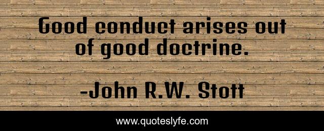 This page presents the quote "Good conduct arises out of good doctrine.". Author of this quote is John R.W. Stott. This quote is about christianity, doctrine, conduct,.
