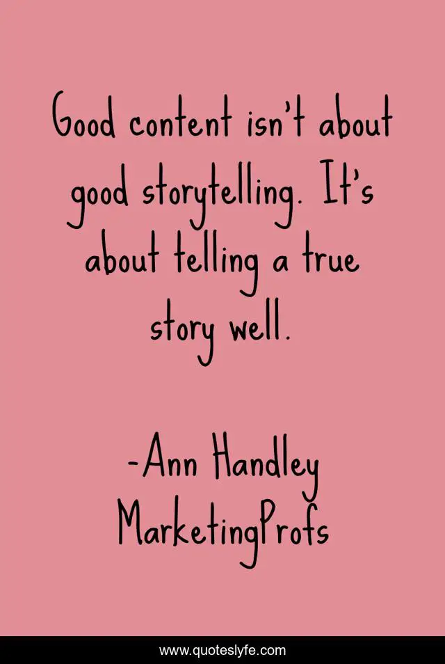 "Ann Handley MarketingProfs Quotes." Quoteslyfe.com, 2025. Fri. 05 Dec. 2025. <https://www.quoteslyfe.com/quote/Good-content-isn-t-about-good-storytelling-237534>.