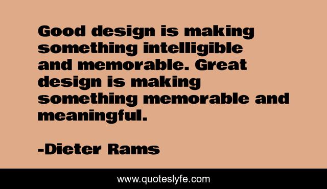 This page presents the quote "Good design is making something intelligible and memorable. Great design is making something memorable and meaningful.". Author of this quote is Dieter Rams. This quote is about design, great, meaningful,.