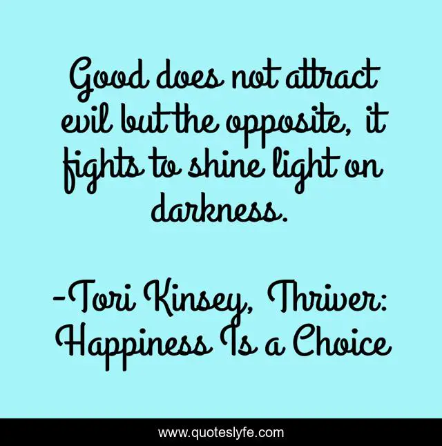 "Tori Kinsey, Thriver: Happiness Is a Choice Quotes." Quoteslyfe.com, 2025. Fri. 05 Dec. 2025. <https://www.quoteslyfe.com/quote/Good-does-not-attract-evil-but-the-164720>.