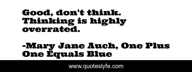"Mary Jane Auch, One Plus One Equals Blue Quotes." Quoteslyfe.com, 2025. Fri. 05 Dec. 2025. <https://www.quoteslyfe.com/quote/Good-don-t-think-Thinking-is-highly-163201>.
