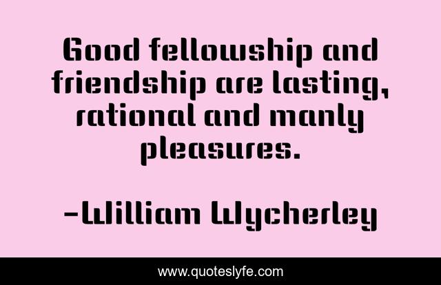 This page presents the quote "Good fellowship and friendship are lasting, rational and manly pleasures.". Author of this quote is William Wycherley. This quote is about friendship, manly, pleasures,.