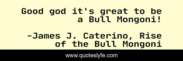 This page presents the quote "Good god it's great to be a Bull Mongoni!". Author of this quote is James J. Caterino, Rise of the Bull Mongoni. This quote is about action-adventure, philosophy,.