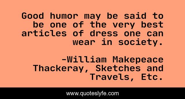 This page presents the quote "Good humor may be said to be one of the very best articles of dress one can wear in society.". Author of this quote is William Makepeace Thackeray, Sketches and Travels, Etc.. This quote is about society, good-humor, dress,.