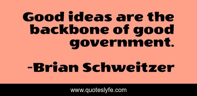 This page presents the quote "Good ideas are the backbone of good government.". Author of this quote is Brian Schweitzer. This quote is about good, ideas, backbone,.