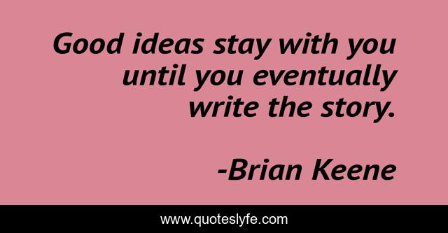 This page presents the quote "Good ideas stay with you until you eventually write the story.". Author of this quote is Brian Keene. This quote is about enthusiasm, writers, art, inspirational, writing,.