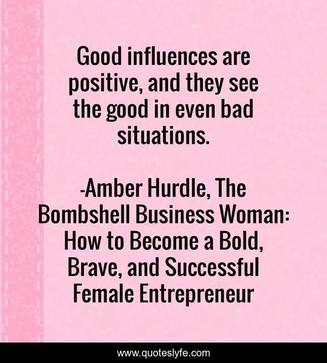 "Amber Hurdle, The Bombshell Business Woman: How to Become a Bold, Brave, and Successful Female Entrepreneur Quotes." Quoteslyfe.com, 2025. Fri. 05 Dec. 2025. <https://www.quoteslyfe.com/quote/Good-influences-are-positive-and-they-see-177504>.