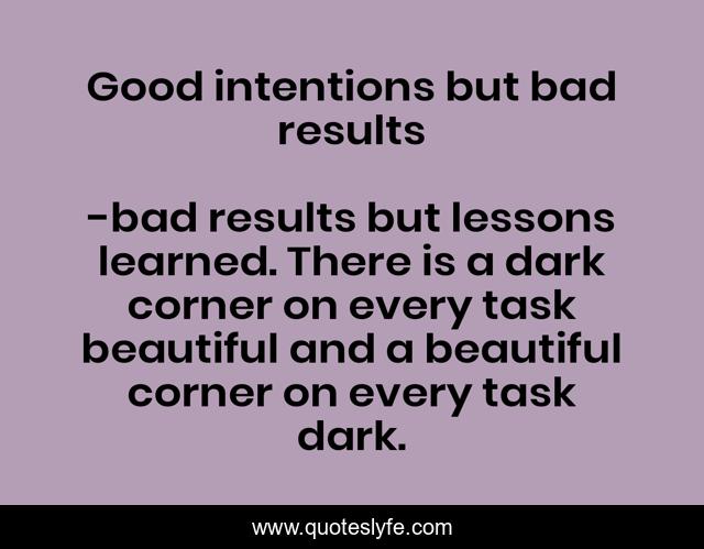 "bad results but lessons learned. There is a dark corner on every task beautiful and a beautiful corner on every task dark. Quotes." Quoteslyfe.com, 2025. Mon. 08 Dec. 2025. <https://www.quoteslyfe.com/quote/Good-intentions-but-bad-results-117335>.