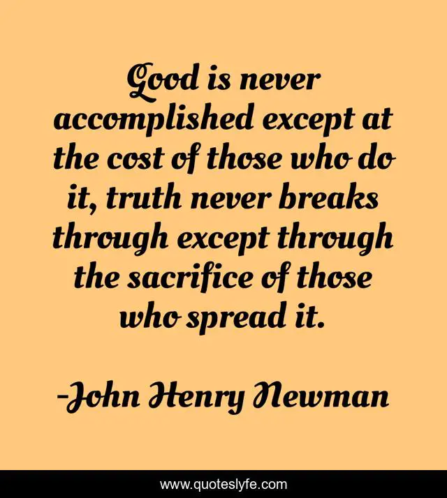 "John Henry Newman Quotes." Quoteslyfe.com, 2025. Fri. 05 Dec. 2025. <https://www.quoteslyfe.com/quote/Good-is-never-accomplished-except-at-the-9942>.