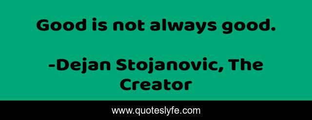 This page presents the quote "Good is not always good.". Author of this quote is Dejan Stojanovic, The Creator. This quote is about the-creator, good, dejan-stojanovic, poetry, wisdom, quotes, literature, quotes-to-live-by, thoughts,.