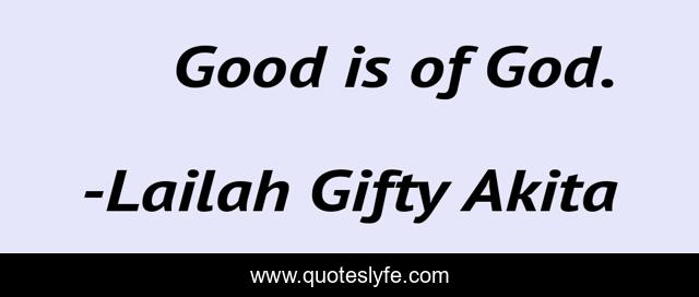 This page presents the quote "Good is of God.". Author of this quote is Lailah Gifty Akita. This quote is about good, christian, god, deeds, inspirational, enthusiasm,.