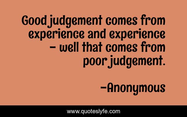 This page presents the quote "Good judgement comes from experience and experience - well that comes from poor judgement.". Author of this quote is Anonymous. .