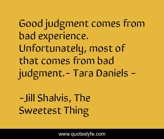 "Jill Shalvis, The Sweetest Thing Quotes." Quoteslyfe.com, 2025. Fri. 05 Dec. 2025. <https://www.quoteslyfe.com/quote/Good-judgment-comes-from-bad-experience-Unfortunately-158520>.
