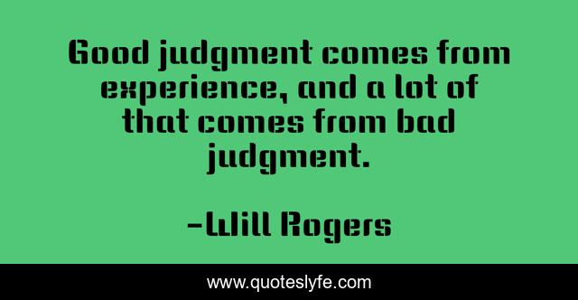 This page presents the quote "Good judgment comes from experience, and a lot of that comes from bad judgment.". Author of this quote is Will Rogers. This quote is about bad, judgment, experience,.