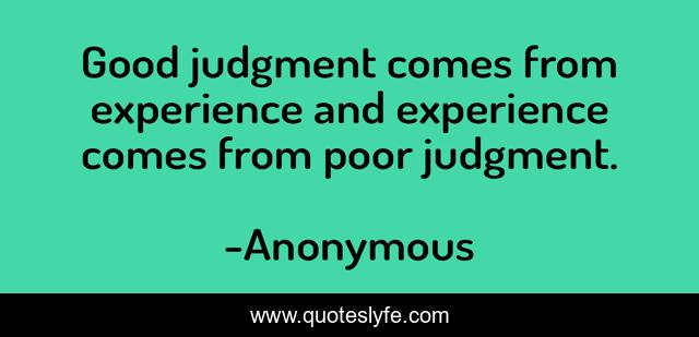This page presents the quote "Good judgment comes from experience and experience comes from poor judgment.". Author of this quote is Anonymous. This quote is about failures, mistakes,.