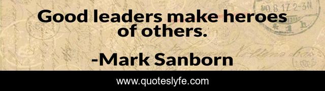 This page presents the quote "Good leaders make heroes of others.". Author of this quote is Mark Sanborn. .