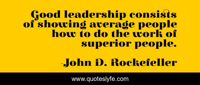 This page presents the quote "Good leadership consists of showing average people how to do the work of superior people.". Author of this quote is John D. Rockefeller. This quote is about good, leadership, people,.