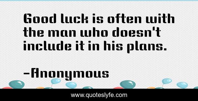 This page presents the quote "Good luck is often with the man who doesn't include it in his plans.". Author of this quote is Anonymous. .