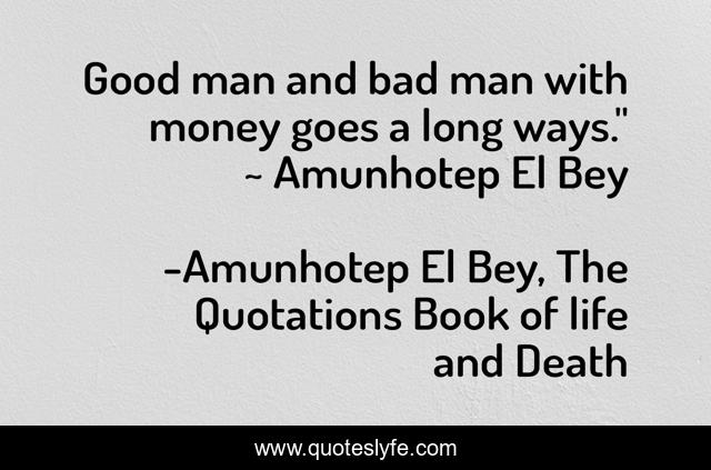 "Amunhotep El Bey, The Quotations Book of life and Death Quotes." Quoteslyfe.com, 2025. Fri. 05 Dec. 2025. <https://www.quoteslyfe.com/quote/Good-man-and-bad-man-with-money-8450>.