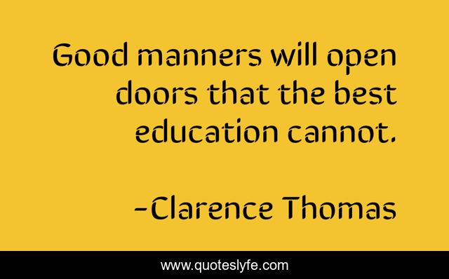 This page presents the quote "Good manners will open doors that the best education cannot.". Author of this quote is Clarence Thomas. This quote is about good, education, doors,.
