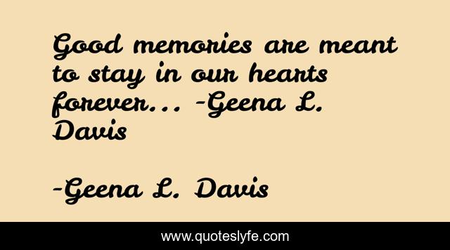 This page presents the quote "Good memories are meant to stay in our hearts forever... -Geena L. Davis". Author of this quote is Geena L. Davis. This quote is about life, love, memories, inspirational, enthusiasm, affection,.