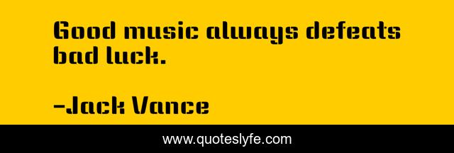 This page presents the quote "Good music always defeats bad luck.". Author of this quote is Jack Vance. This quote is about fantasy, music,.