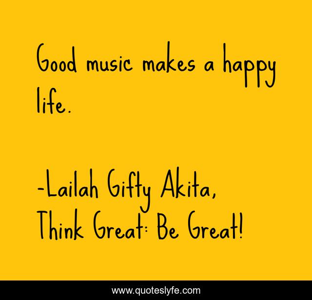 "Lailah Gifty Akita, Think Great: Be Great! Quotes." Quoteslyfe.com, 2025. Sat. 06 Dec. 2025. <https://www.quoteslyfe.com/quote/Good-music-makes-a-happy-life-78384>.