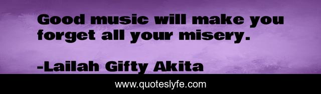 This page presents the quote "Good music will make you forget all your misery.". Author of this quote is Lailah Gifty Akita. This quote is about misery, healthy-living, wellness, music, songs,.