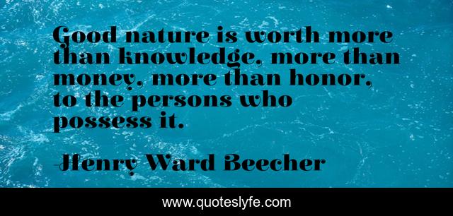 This page presents the quote "Good nature is worth more than knowledge, more than money, more than honor, to the persons who possess it.". Author of this quote is Henry Ward Beecher. This quote is about money, knowledge, wisdom,.