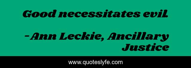 This page presents the quote "Good necessitates evil.". Author of this quote is Ann Leckie, Ancillary Justice. This quote is about good, evil,.