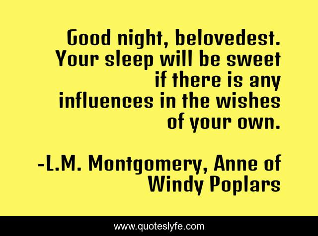"L.M. Montgomery, Anne of Windy Poplars Quotes." Quoteslyfe.com, 2025. Sun. 07 Dec. 2025. <https://www.quoteslyfe.com/quote/Good-night-belovedest-Your-sleep-will-be-198980>.