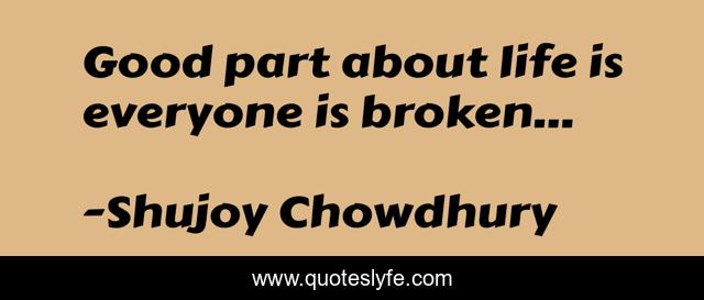 This page presents the quote "Good part about life is everyone is broken...". Author of this quote is Shujoy Chowdhury. This quote is about broken-heart, broken, life, good, everyone,.