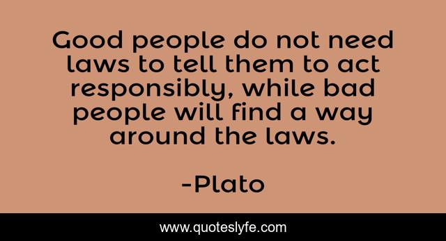 This page presents the quote "Good people do not need laws to tell them to act responsibly, while bad people will find a way around the laws.". Author of this quote is Plato. This quote is about society, laws,.