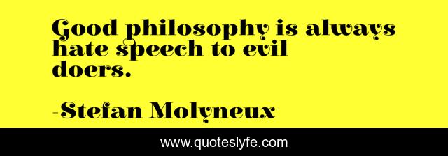 This page presents the quote "Good philosophy is always hate speech to evil doers.". Author of this quote is Stefan Molyneux. This quote is about morals, freedom, philosophy, liberty, courage, virtue, ethics, voluntaryism,.