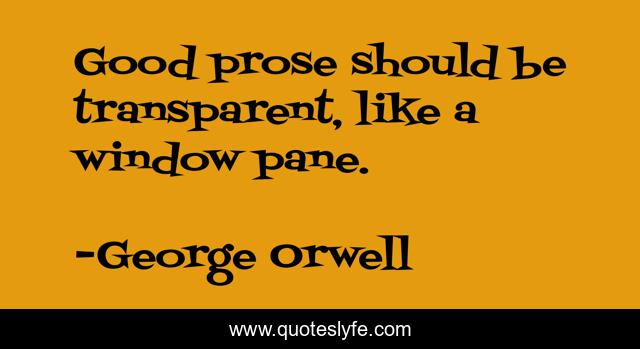 This page presents the quote "Good prose should be transparent, like a window pane.". Author of this quote is George Orwell. .